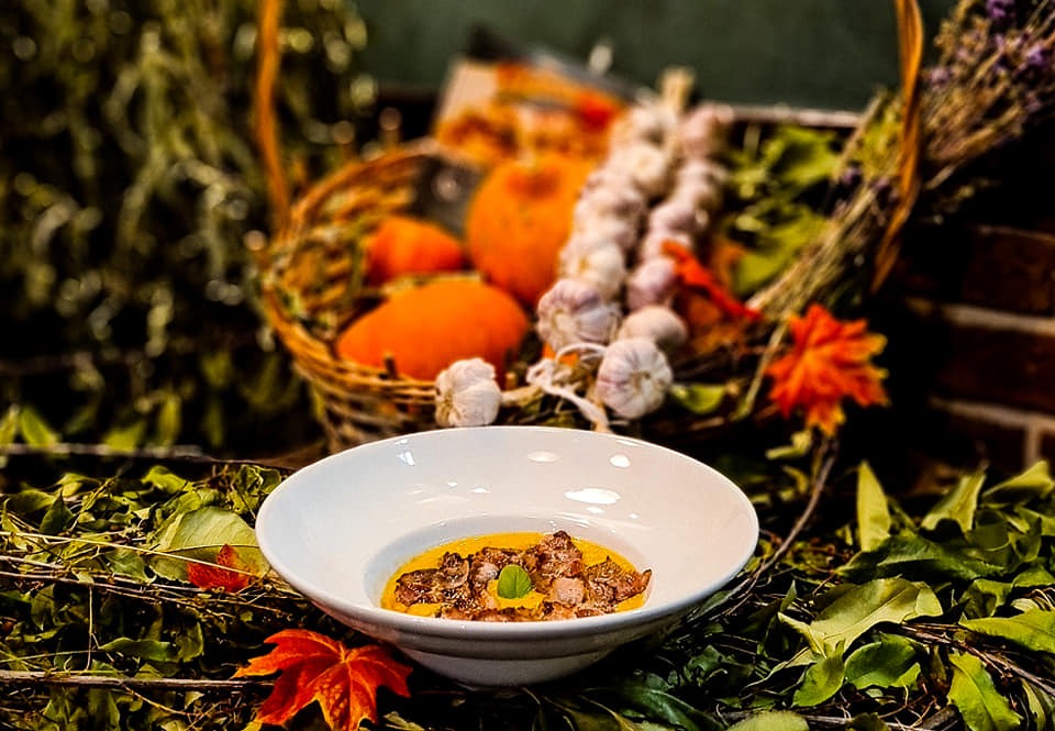 Do każdej sałatki podawany jest podpłomyk z oliwą, solą i rozmarynem.